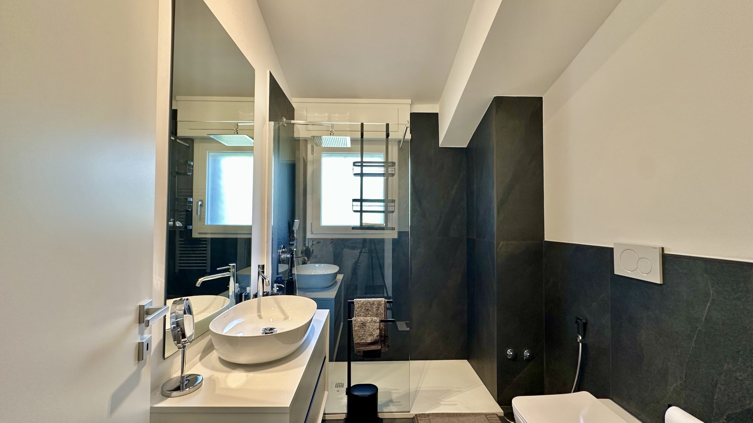 Salendo al piano superiore, scoprirete una suite elegante con due cabine armadio e un bagno privato. A completare il piano, un’ulteriore camera matrimoniale con bagno, mentre è possibile ripristinare facilmente una terza camera, adattandosi così alle vostre esigenze di spazio.